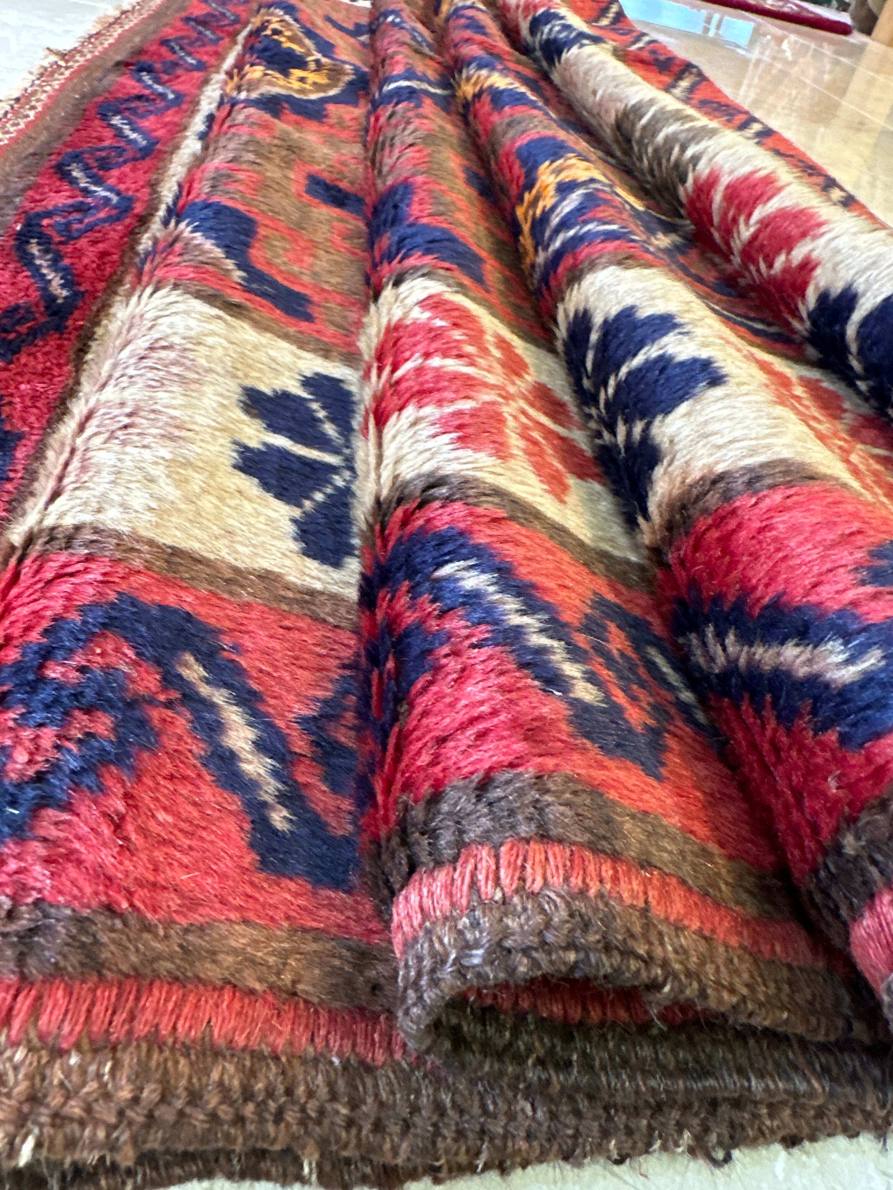 バルーチ族、ビンテージのとても綺麗で希少な絨毯です☆毛足が長く柔らかく織られた良質・美品です☆