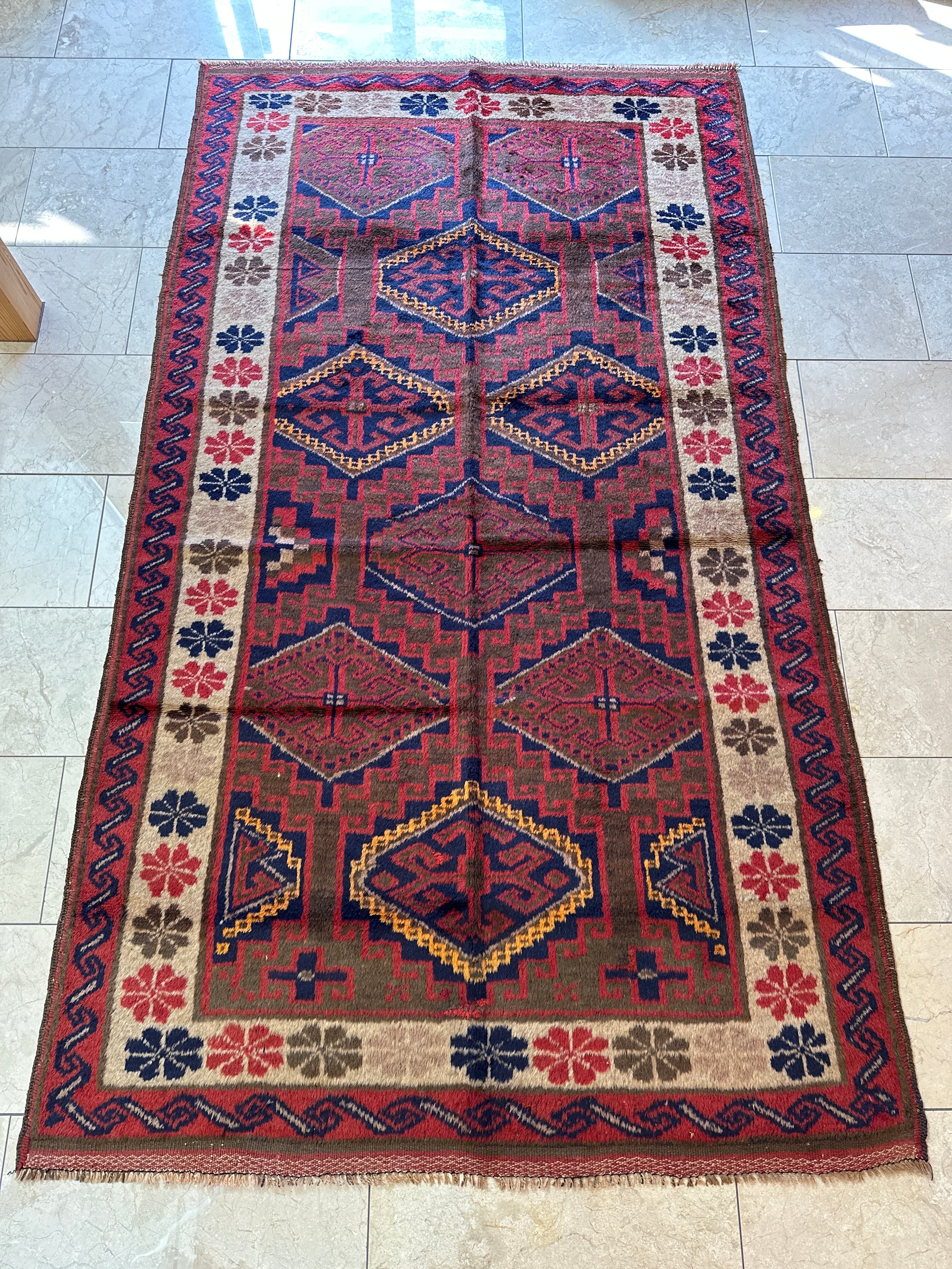 手織りビンテージ*アフガニスタン絨毯①-2☆タイマニ*バルーチ族