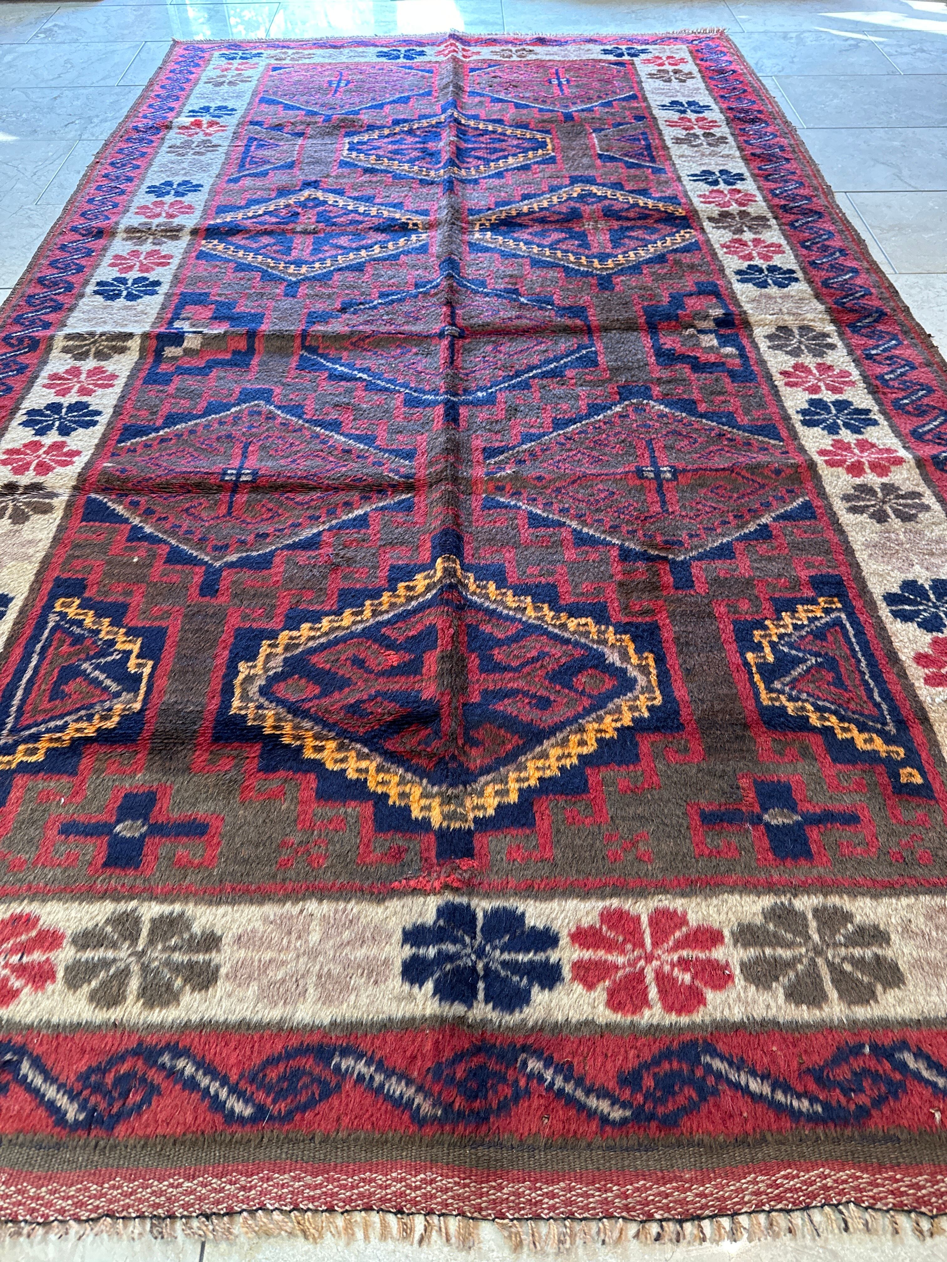 こちらのバルーチ族は、貴重な一点ものの部族絨毯です。アフガニスタンのバルーチ族の伝統的な手法で手織りされ、古き良き時代の雰囲気を感じることができます。